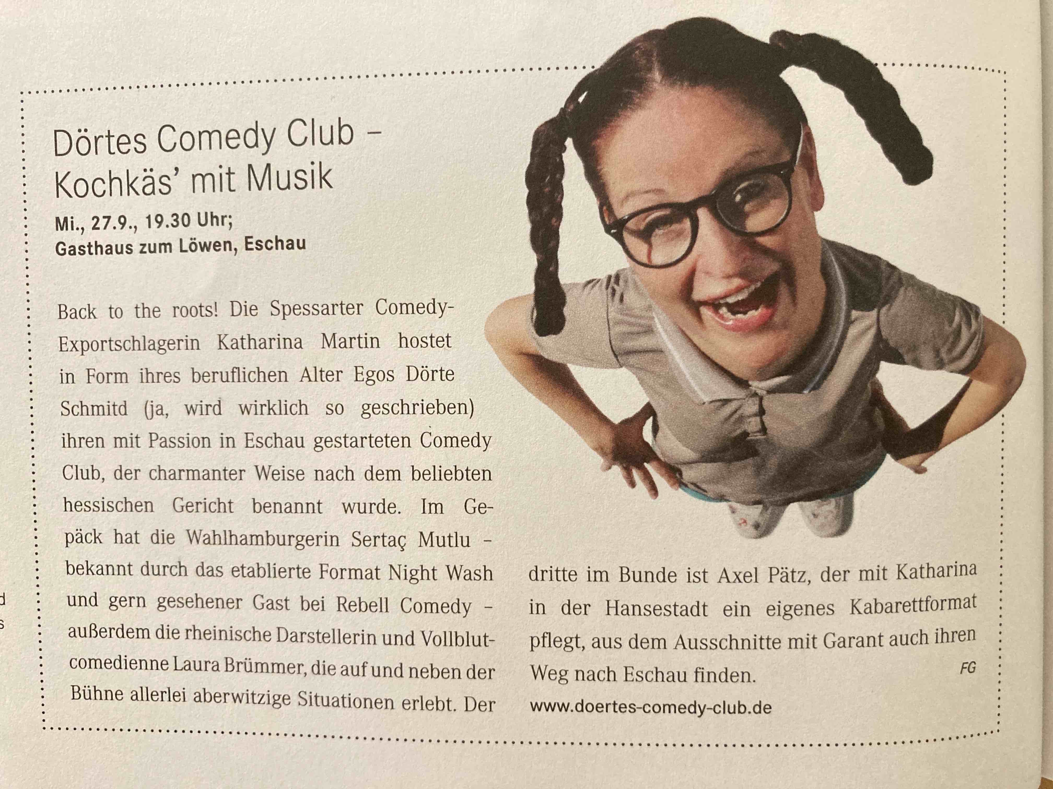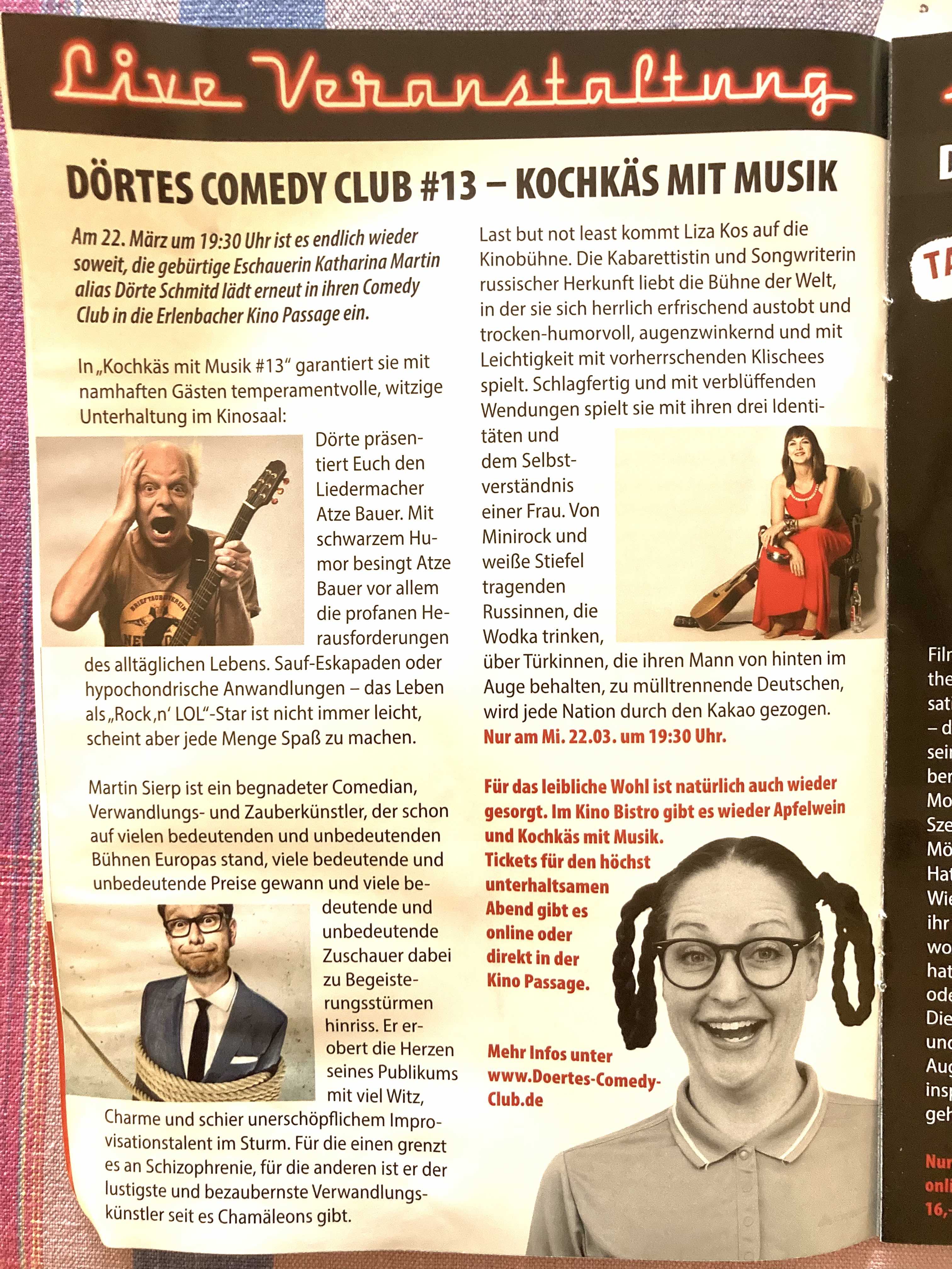 Bald isses widder so weit. Der nächste Comedy Club steht an.