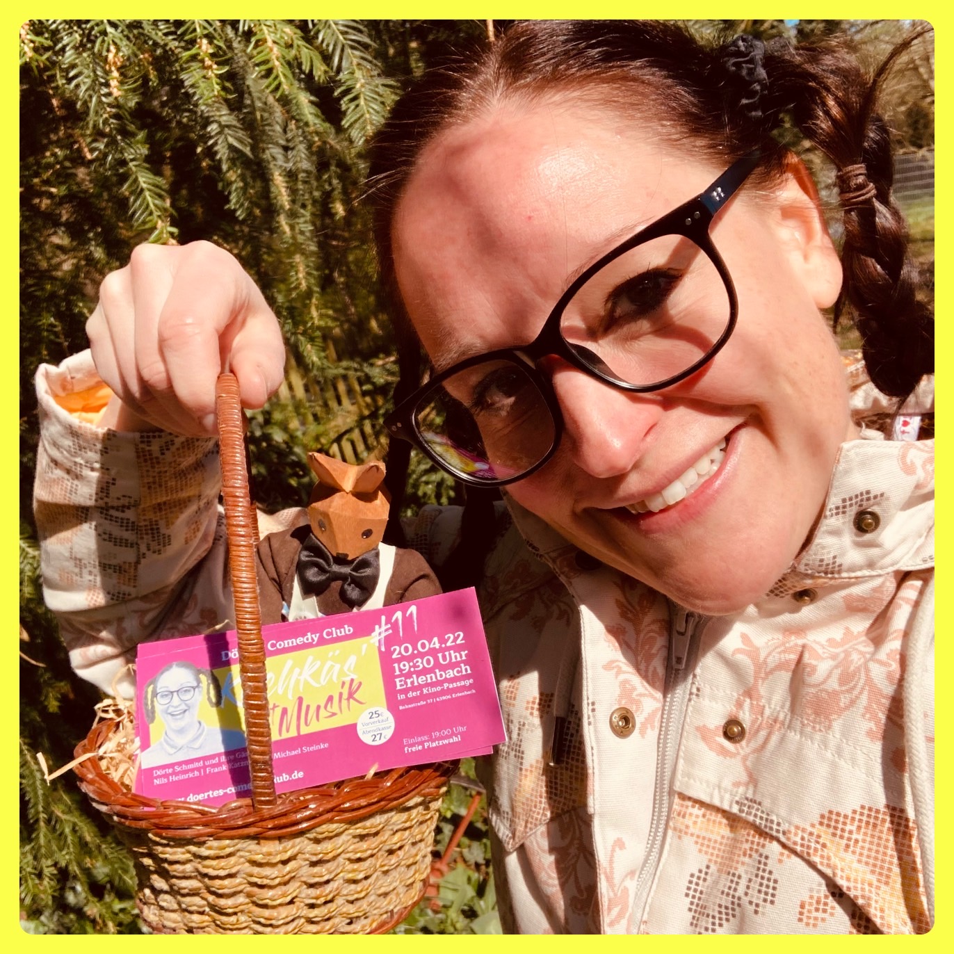 "Was bin isch uffgerescht! Es geht los. Die Plakate & Fleier un Alles is angekomme - un isch vorne druff, haha E bissje was hab isch a scho uffgehängt un ausgeteilt. Jetzt könnt Ihr fleißig Tickets kaufe un da freu isch misch über jeden der dann mit von de Partie is. Aber net zu lang warte - denn die Plätz sin begrenzt. Des gibt n schöne Schbass!"